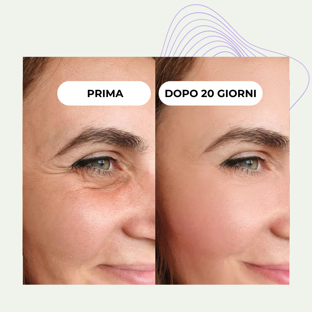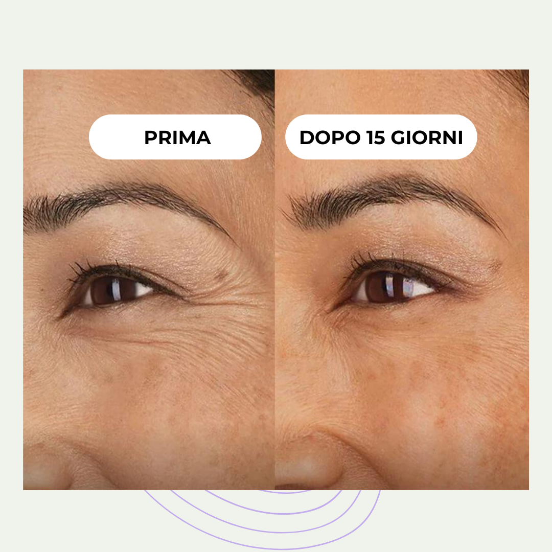 Questo processo aiuta a ridurre le rughe, le linee sottili e le occhiaie, mentre migliora l'elasticità e la luminosità.